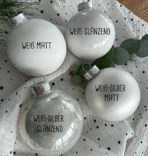 Bei unseren Weihnachtskugel handelt es sich um hochwertige Echtglaskugeln in sechs verschiedenen Farben mit einem Durchmesser von 6cm. Du kannst wählen zwischen schwarz, weiß und silberweiß jeweils matt und glänzend.